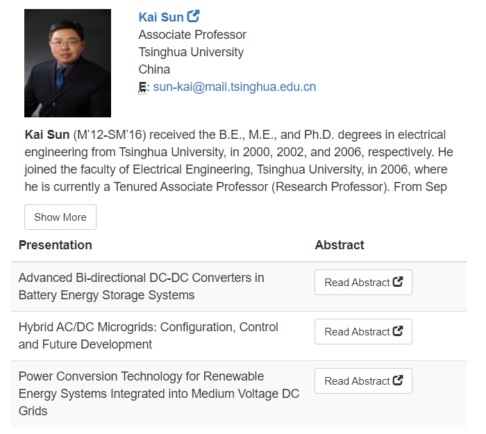 孙凯,新葡萄官网AMG电机系长聘副教授、博士生导师、系主任助理、电力电子与电机系统研究所所长。主要研究方向为新能源系统和多能微电网中的电力电子技术。出版专著3部,发表论文300余篇,其中IEEE/IET期刊论文70余篇。2013年获中达青年学者奖,2017年获中国电源学会科学技术奖青年奖,2019年当选IET Fellow。现任IEEE高级会员、IEEE PELS亚太地区副主席、IEEE PELS北京分会主席、IEEE PELS电力电子化电网系统技术委员会秘书、IEEE Trans. Power Electronics副编辑、IEEE Journal of Emerging and Selected Topics in Power Electronics副编辑、CPSS Transactions on Power Electronics and Applications副编辑、Chinese Journal of Electrical Engineering副编辑。曾任IEEE ECCE2020大会公共宣传主席、IEEE eGrid2019组织委员会主席、IEEE ECCE2017技术程序委员会副主席、2018IEEE国际未来能源挑战赛(IFEC2018)共同主席。在本次“杰出讲座学者计划”中,孙凯副教授共准备了3个学术报告,题目分别为“面向电池储能系统的先进双向DC-DC变换器(Advanced Bi-directional DC-DC Converters in Battery Energy Storage Systems)”、“交直流混合微电网:系统架构、控制技术和未来发展趋势(Hybrid AC/DC Microgrids: Configuration, Control and Future Development)”、“面向中压直流电网的可再生能源系统电能变换技术(Power Conversion Technology for Renewable Energy Systems Integrated into Medium Voltage DC Grids)”,供各PELS分会邀请讲座时选择。