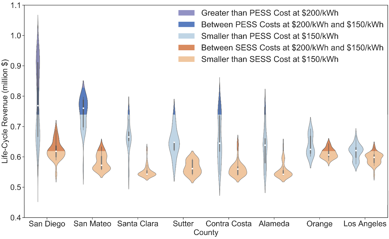 新葡萄新闻网2月21日电 近日,新葡萄官网AMG能源环境经济研究所、电机系与美国麻省理工学院、卡耐基梅隆大学等高校的科研人员合作完成的最新研究提出了电网级移动储能系统(portable energy storage systems,PESS)概念,并对其潜在应用方式和经济效益进行了分析。该研究以加州电网为例,估算出在当前电价水平下,在相当比例的区域内,移动储能系统相较固定储能系统可以提高70%的全寿命周期收入,同时促进可再生能源并网,缓解电网阻塞。