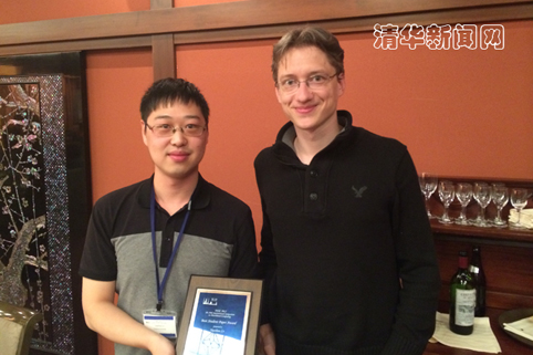 吕曰洲与导师Thomas Moscibroda教授(右)在会议上的合影。