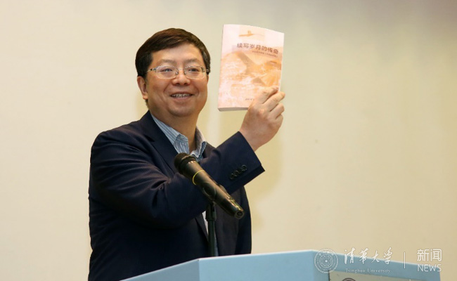 邱勇校长展示《续写岁月的传奇-新葡萄学子感悟<平凡的世界>》样书。