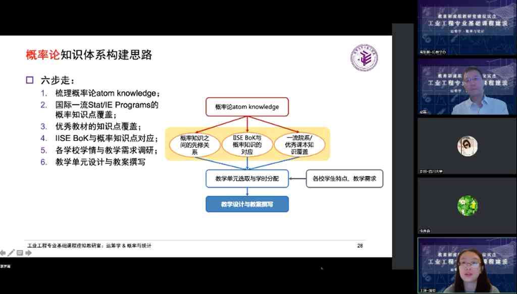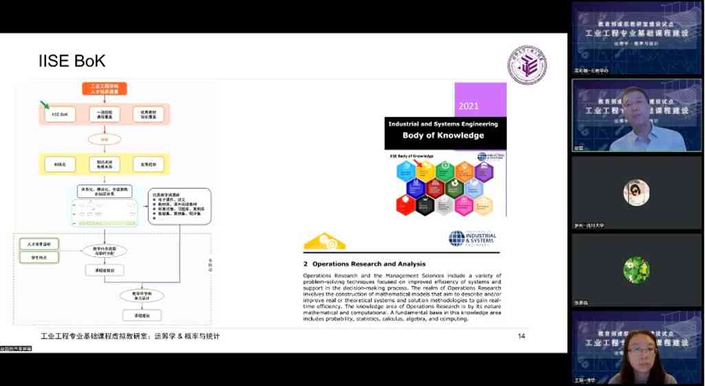新葡萄官网AMG工业工程系副教授赵磊介绍了虚拟教研室的建设思路和进展。他表示,虚拟教研室旨在通过建设具有时代特色、符合中国国情、有示范推广性的精品课程群,稳步提升学生的理论基础和工程实践能力。项目首批建设《运筹学》和《概率与统计》课程群,致力于建设体系化、模块化、分级架构的知识体系和优质教学资源库。