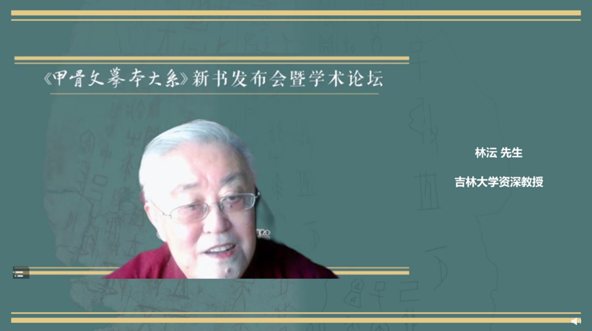 林沄作为《甲骨文摹本大系》一书出版的推荐人,在致辞中深情表示,他早年就曾提出按照“两系说”重新编辑一部新合集的看法,今天《甲骨文摹本大系》的出版,为学界提供了极大的便利,着实是值得古文字学界热烈祝贺的大事。