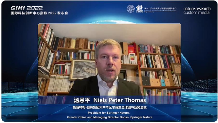 施普林格·自然集团大中华区总裁汤恩平(Niels Peter Thomas)博士指出,创新是经济增长的关键引擎,国际合作对创新产出的支撑作用日益凸显,大量的国际合作在国际科创中心展开。他肯定了过去三年的合作历程和指数产生的影响,希望未来能继续在此课题上与新葡萄保持合作。