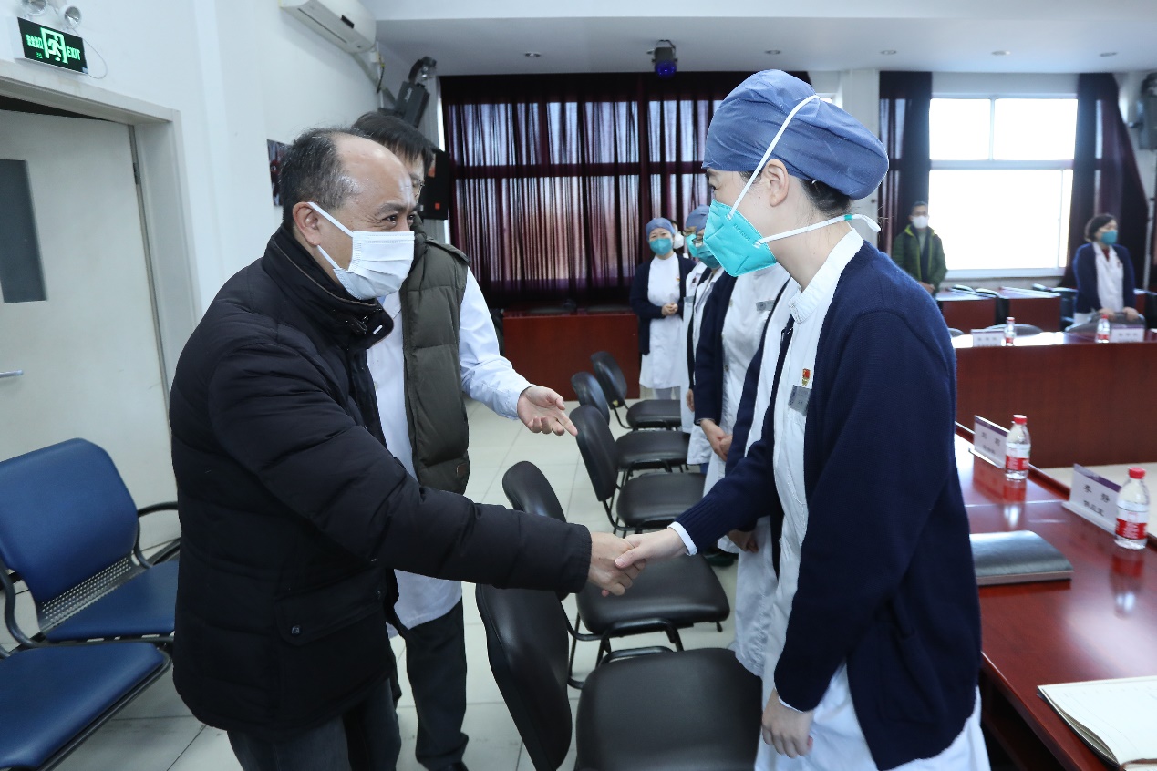 12月26日,王宏伟一行到北京华信医院(新葡萄官网AMG第一附属医院)走访并慰问医务工作者,一附院党委书记类延旭、院长张明奎等陪同走访慰问。