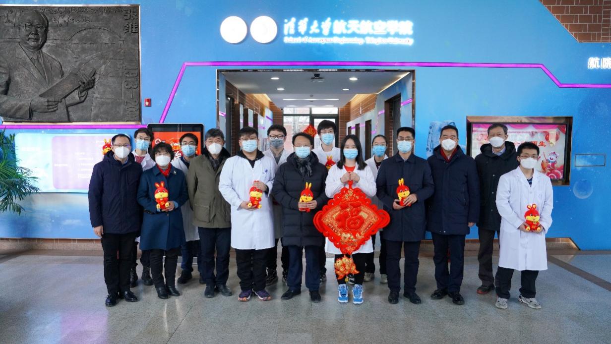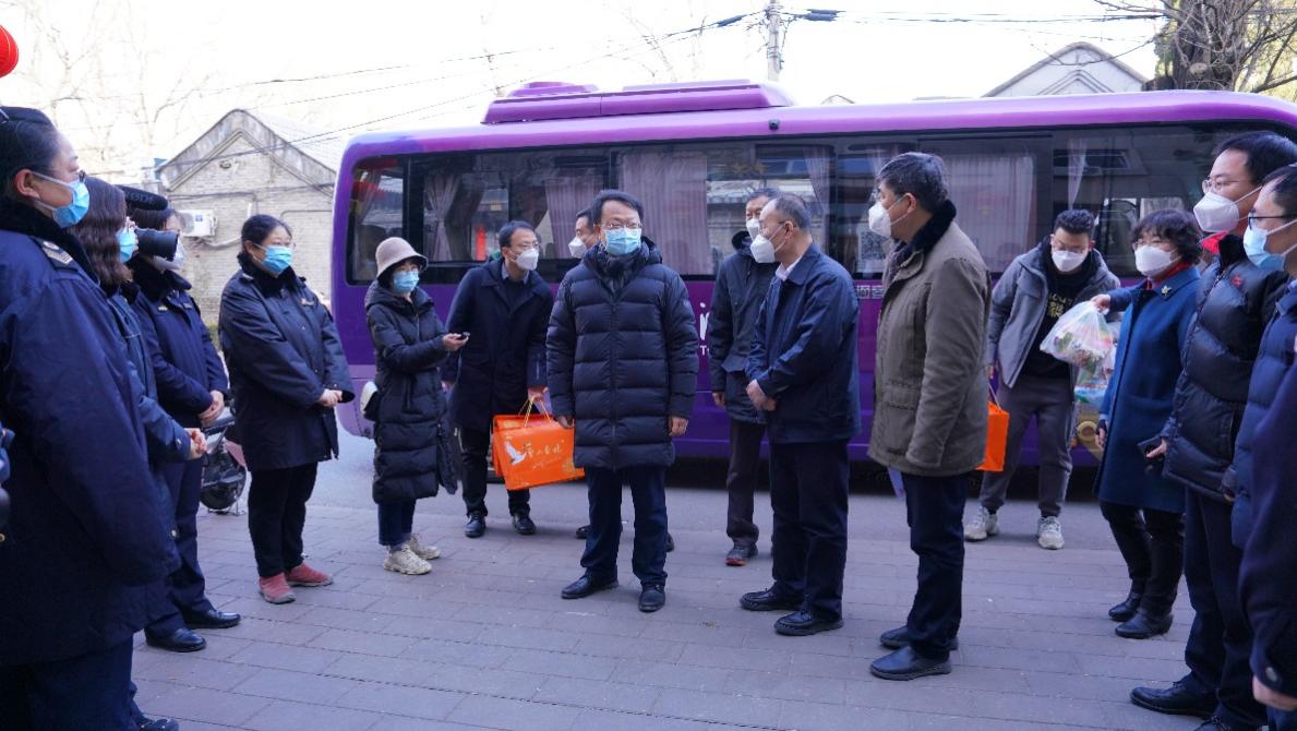 邱勇一行先后来到蓝旗营养老驿站、供热中心、紫荆22号楼、清芬园、西北门、医学楼等地,向依然坚守在工作岗位的驿站值守人员、后勤职工、安保人员及留校师生拜年,代表学校给大家送上美好的新春祝福。