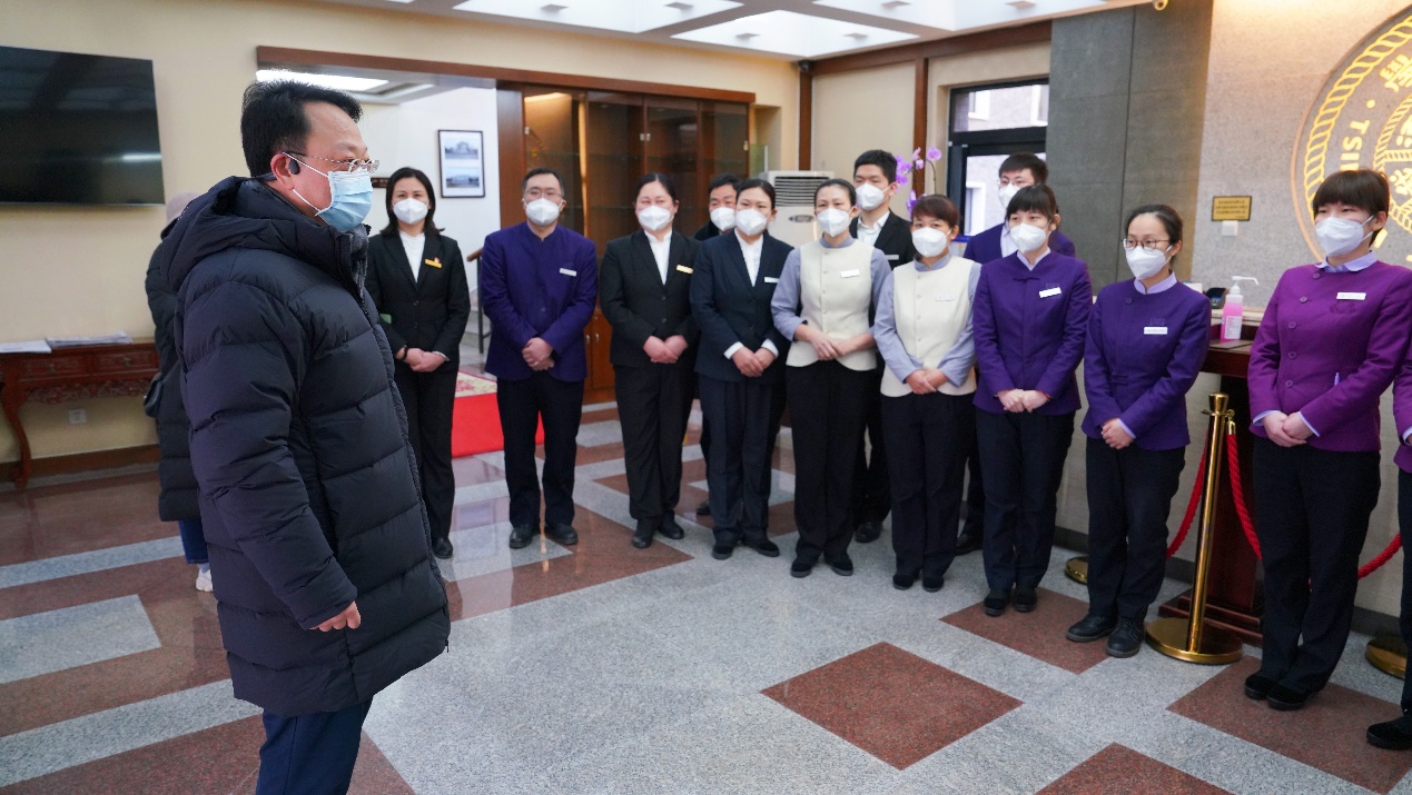 在新斋看望寒假集中住宿的留校学生