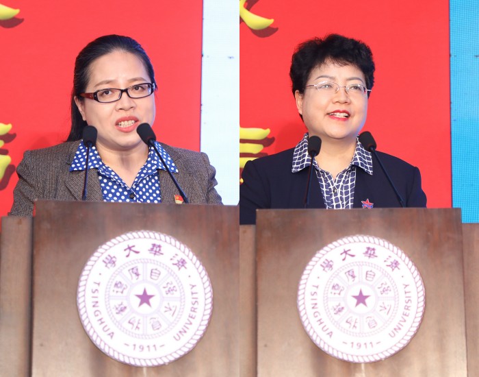 徐川子、姚启明、李双双、李蕉四位巾帼劳模代表发言(从左至右,从上至下)
