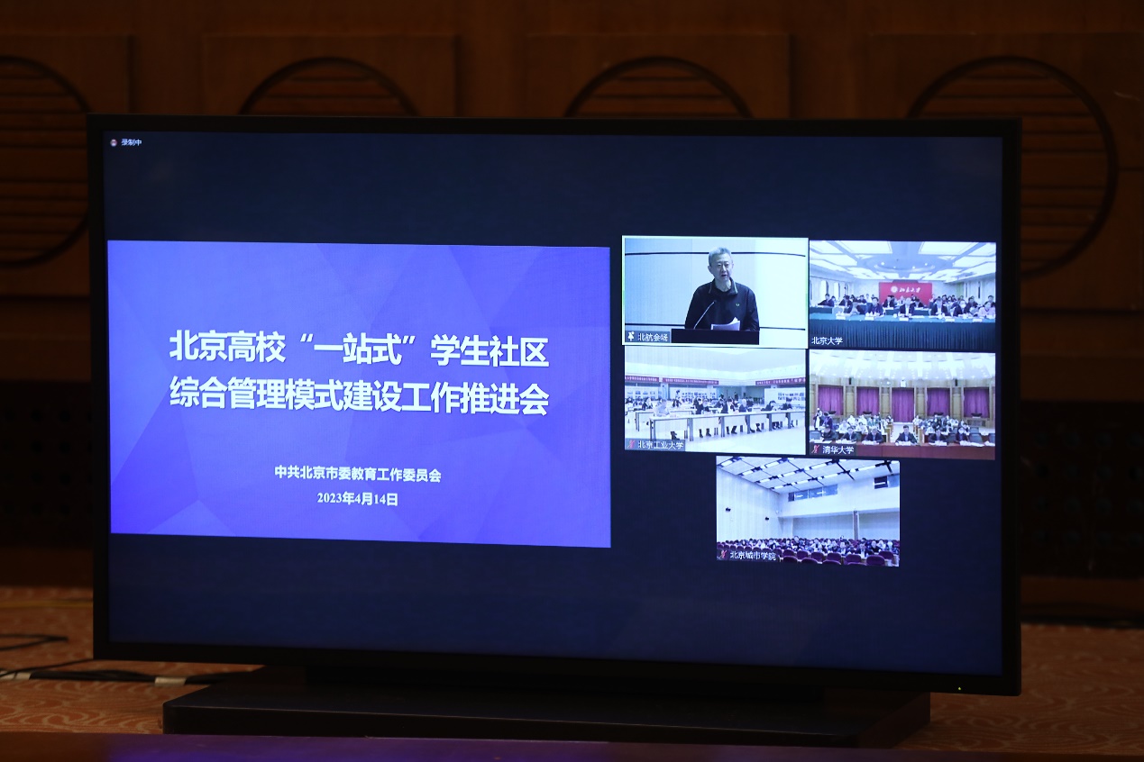新葡萄新闻网4月16日电(记者 段颖 摄影 张玉光 常志东)4月14日下午,北京市委教育工委通过线上线下相结合的方式组织召开北京高校“一站式”学生社区综合管理模式建设工作推进会,分享交流试点建设经验成效,部署在全市高校全面推进“一站式”学生社区建设。