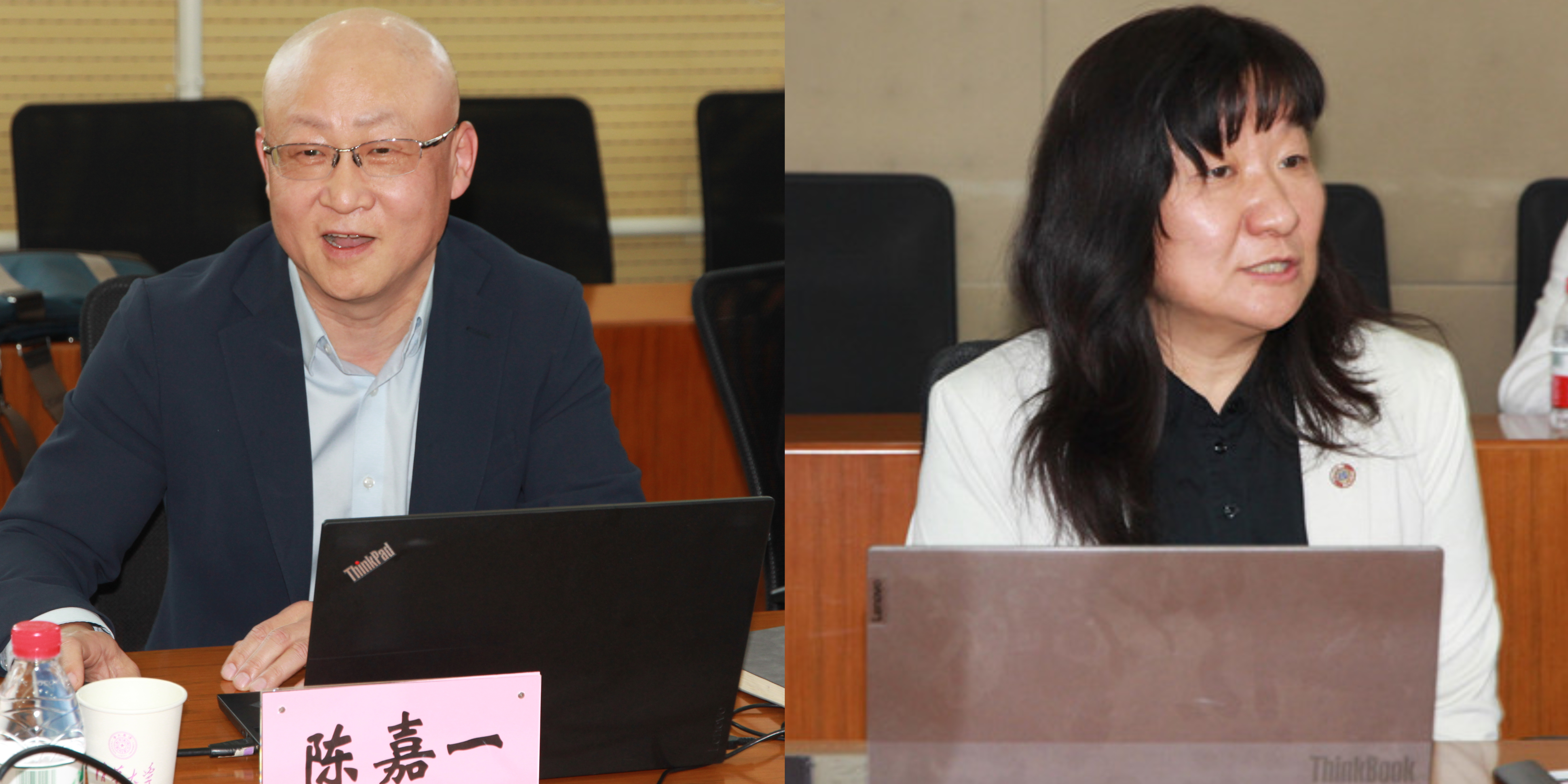 陈嘉一(左)、刘璘汇报工作