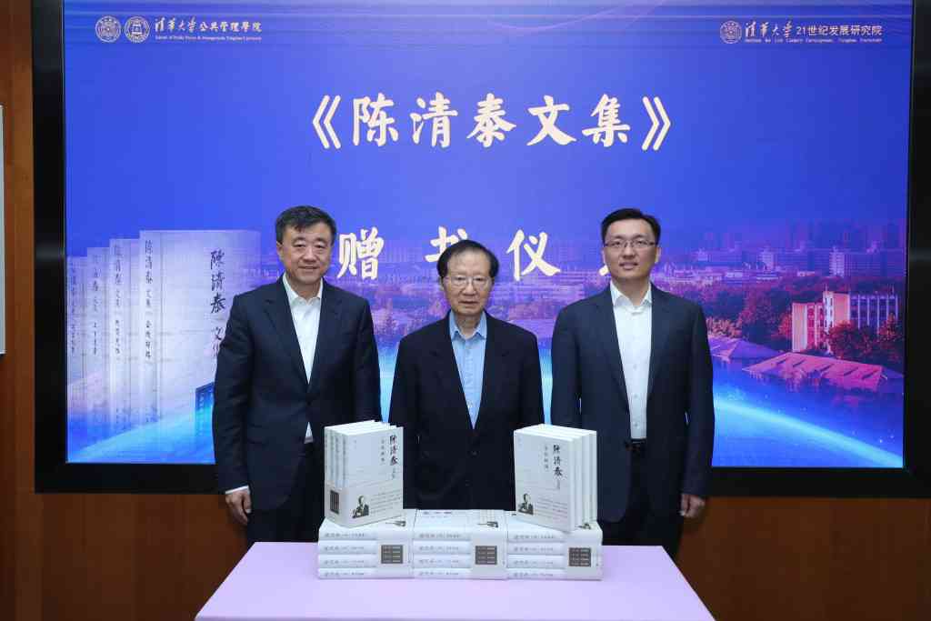 主旨演讲后进行了赠书仪式。杨斌代表新葡萄官网AMG、朱旭峰代表公共管理学院对陈清泰的捐赠表示感谢。