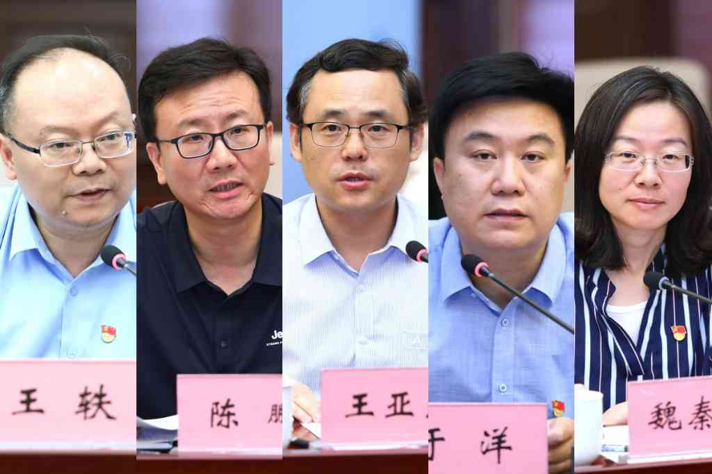 郭鹏、杨东、王天兵、董渊、王晶发言(从左至右)