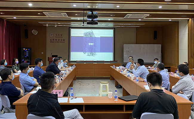 生命学院院长王宏伟汇报了生命科学学科发展现状、发展目标与思路、重点学科方向以及未来行动计划。