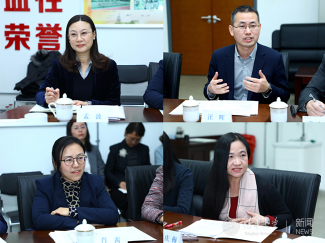 在调研会上,国际处副处长孟波、汪晖、肖茜和国际处党支部副书记杨庆梅先后发言。