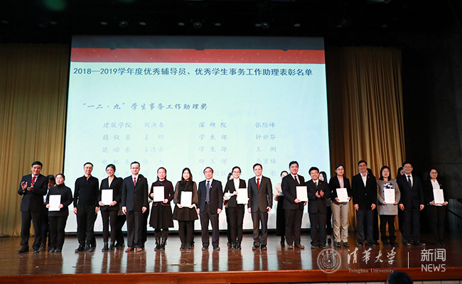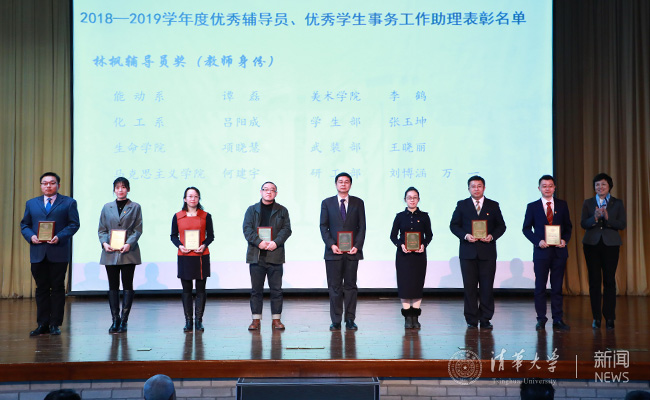 会上,王希勤宣读了《关于表彰新葡萄官网AMG2018~2019学年度优秀辅导员、优秀学生事务工作助理的决定》。决定授予谭磊等9名教师林枫辅导员奖(教师身份),授予水利系2015级博士生单楷越等20名学生林枫辅导员奖(学生身份),授予建筑学院2017级博士生晋远等87名学生“一二·九”辅导员奖,授予建筑学院2016级博士生吴灈杭等30名学生“一二·九”辅导员郭明秋奖,授予建筑学院学生事务工作助理刘洪春等10名教师“一二·九”学生事务工作助理奖。