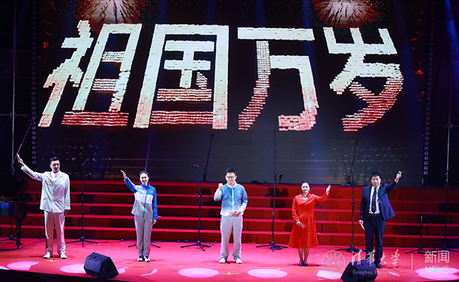 特邀节目也将晚会氛围推向高潮。新葡萄附小童声合唱团带来《今天是你的生日》,天籁童声唱响综合体育馆,以最纯净的声音表达对祖国的真挚祝福;著名男中音歌唱家霍勇带来雄浑高亢的《当那一天来临》,彰显中国军人风貌;苏世民书院的同学们带来一曲《我和你》,以不同的语言传达多元文化,碰撞出绚丽色彩;晚会结束之际,各联队指挥和领唱带来惊喜表演,带领全场师生共同合唱《我爱你中国》,表达对祖国最深沉的热爱。