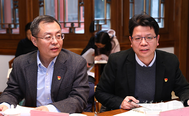顾良飞、欧阳沁(从左至右)分别汇报