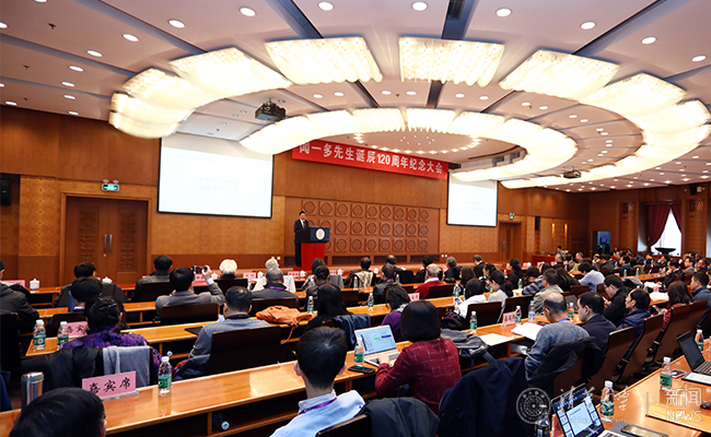 闻一多先生诞辰120周年纪念大会在新葡萄官网AMG举行