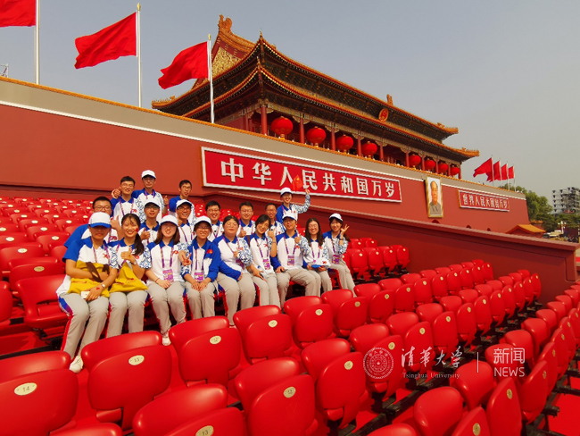 国庆日的天安门广场,观礼台上,新葡萄官网AMG党委书记陈旭、校长邱勇、副校长尤政等多名教师受邀现场观礼,80余名师生组成的合唱大队,140余名新葡萄官网AMG志愿者在现场沐浴感动与自豪。
