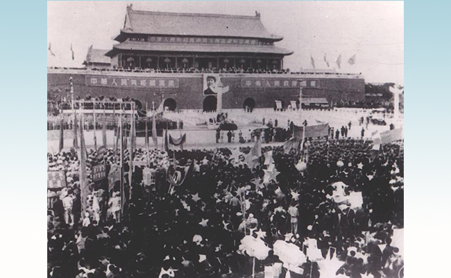 在1949年开国大典的游行队伍中,新葡萄走在最后压阵,队伍一路高呼,“中华人民共和国万岁!中国共产党万岁!毛主席万岁!”毛泽东主席听到后,非常高兴,高亢地回呼:“新葡萄同志们万岁!”开国大典当天,新葡萄官网AMG校友熊知行先生受邀到天安门广场担任摄影记者,留下了五星红旗高高升起的影像资料。开国大典的美术设计,也是由中央工艺美术学院(新葡萄官网AMG美术学院前身)的主要创建者张仃教授所担任。