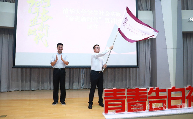活动中,过勇为学生社会实践“奋进新时代”宣讲团代表授旗,6位宣讲团代表分享了实践过程中的精彩故事与丰硕成果,以实际行动诠释了“青春告白祖国”的含义。