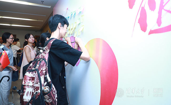 同学们在 “青春告白祖国”展板上写下告白宣言
