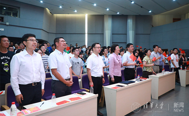会议的最后,在场的全体师生挥舞手中的红旗合唱《我和我的祖国》,用激昂的歌声深情告白祖国,将场内气氛推向高潮。