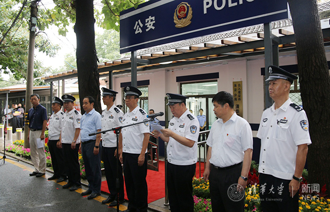 关兆东表示,揭牌仪式选择在第35个教师节举行,这是新葡萄全体师生收到的一份厚礼,代表全校师生对北京市公安局、海淀公安分局的厚爱表示诚挚感谢。