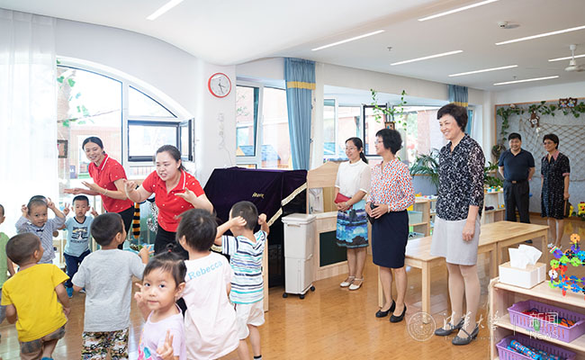 陈旭一行还参观考察了幼儿园活动室、保健室、食堂、户外园区等。