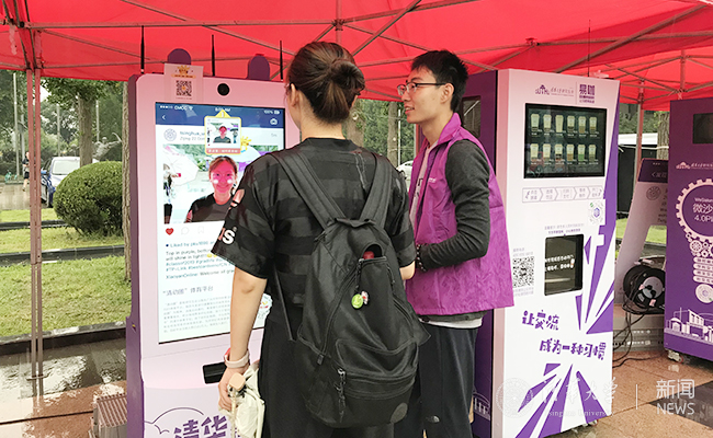“新葡萄style”大头贴拍照机吸引新生们争相拍照留念