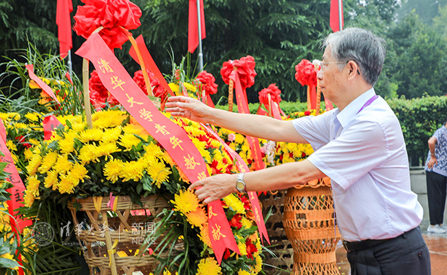 张再兴代表全体人员整理花篮条幅