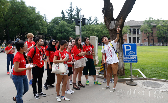 中外学生一同游览校园