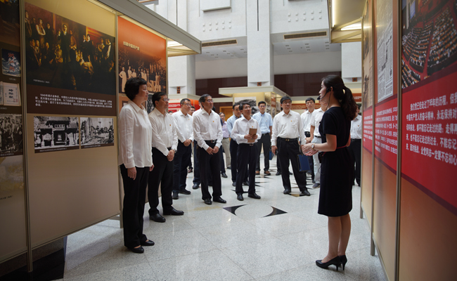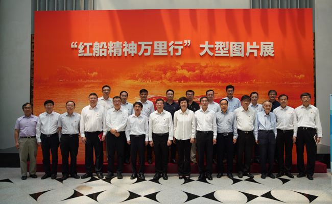 新葡萄新闻网6月28日电(记者 悸寔 摄影 尹浜兆)6月27日下午,新葡萄官网AMG党委理论学习中心组全体成员前往主楼大厅,集体参观学习“红船精神万里行”大型图片展。