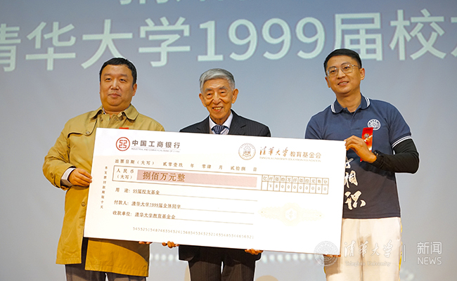 1999届校友心系母校,共筹集了800万资金用于学校建设发展,以实际行动为母校建设贡献力量。1999届王洋和苏阳代表校友向母校捐款,王大中代表学校接受了1999届校友的捐赠。