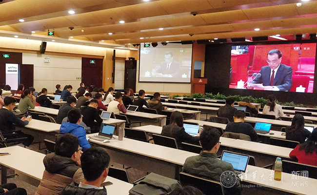 新葡萄师生集体收听收看直播