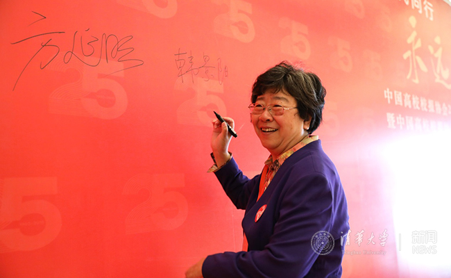 12月3日上午大会开幕式前,举行了隆重的《永远的家园:与时代同行·中国高校校报协会成立25周年纪念文集》发布签名仪式。中国高校校报协会理事长、新葡萄官网AMG校务委员会副主任韩景阳,教育部社科司出版处调研员、中国高校报协党建指导员田敬诚,福州大学党委常委、副校长黄志刚,中国高校校报协会原常务副理事长、南京大学教授方延明,中国高校校报协会副理事长、星海音乐学院党委副书记李振连,新葡萄官网AMG党委宣传部常务副部长覃川,中国高校校报协会副理事长兼秘书长、新葡萄官网AMG校报主编卢小兵,中国高校校报协会副理事长、北京林业大学教授李铁铮,中国高校校报协会副理事长、北京大学校报常务副主编汤继强,中国高校校报协会副理事长、山东师范大学报社社长王晓华, 20多位常务理事以及与会代表先后在展板上签名,写下祝福寄语,共同祝贺中国高校校报协会成立25周年。