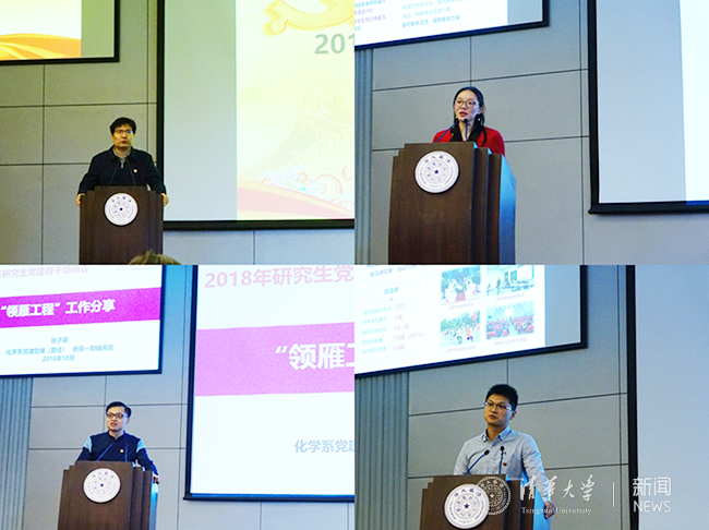 研工部思教办德育工作助理、“新雁一期”辅导员张子健结合化学系2017-2018学年度“领雁工程”工作,从如何做好理论学习、红色实践、骨干培养三个方面分享了工作心得体会,并介绍了新生党支书专项培养计划(新雁班)的相关情况。