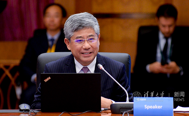 白重恩向顾问委员会报告过去一年学院工作进展,包括学院领导班子换届、对去年顾问委员会委员建议事项的落实情况、教学项目亮点、顾问委员相关活动等内容。