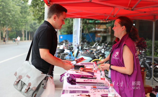 综合体育馆内外,包括国际学生在内的多名研究生志愿者们在紧张而有序地忙碌着,引导新生有条不紊地完成报到手续。院系迎新点处,学长学姐正在仔细地为新同学讲解报到程序、注意事项和学科特色;新新葡萄学堂的广场上,“新葡萄有你,芳华共启”的立体标语引入注目,新生们纷纷与之合影,在清新靓丽的新葡萄园里开启属于自己的芳华岁月。