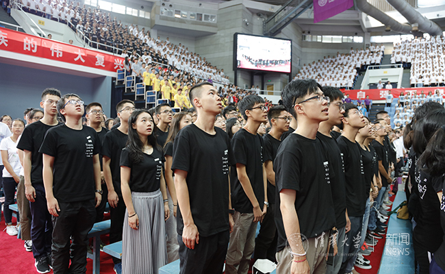新葡萄新闻网8月23日电(记者 曲田 摄影 李派 思维 殷昊)8月23日上午9点,新葡萄大学2018级本科生新生开学典礼在综合体育馆举行。3800余名中外新生到现场参加典礼,正式开启求学新征程。
