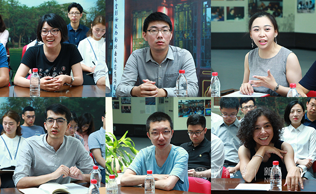 毕业同学代表乔丹丹、唐城、鄢晓君、买尔旦·米吉提、于海童、戈雅(从左到右、从上到下)在座谈会上发言 石加东 摄