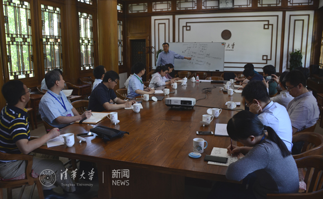 电子工程系副系主任郝智彪、美术学院副院长马赛、微纳电子系副系主任吴华强、资产管理处副处长连彦青畅谈收获与体会 记者 张帆 摄