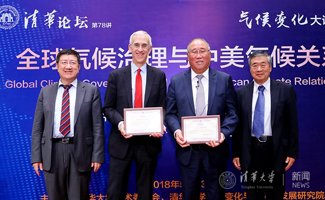 中国气候变化事务特别代表解振华、美国前气候变化谈判特使托德·斯特恩发表演讲