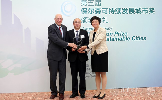 “保尔森可持续发展城市奖”是保尔森基金会自2013年起设立的奖项,旨在推进中国的可持续城镇化和低碳经济转型,实现在气候变化、空气质量和可持续经济增长等方面的宏伟目标。该奖项每年评选出一个在可持续城镇化发展领域具有代表性的最佳实践项目,并予以表彰。。