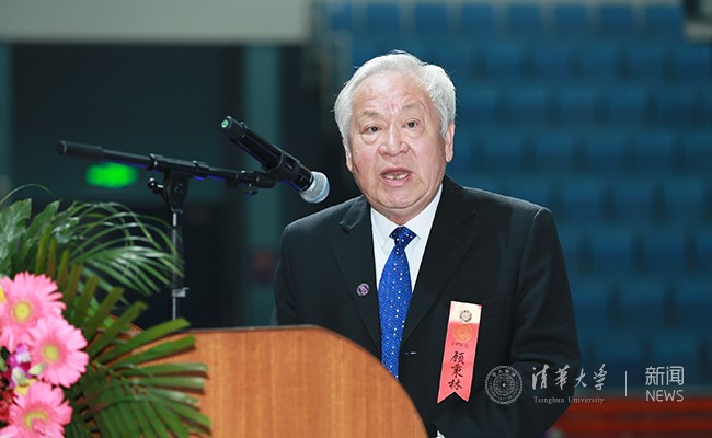 顾秉林在纪念大会上讲话 学生记者 王怡臻 摄