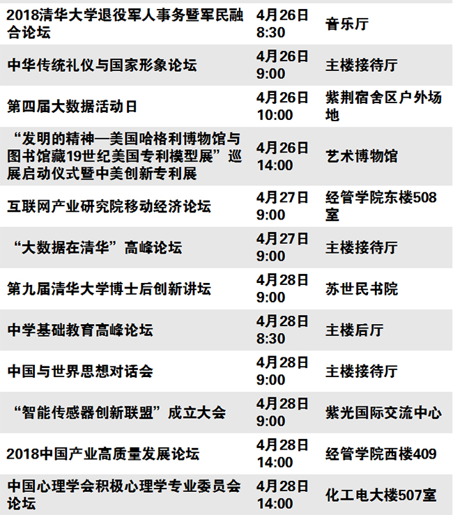 秩年、学术、体育、展览、校园开放、艺术、院系校友活动