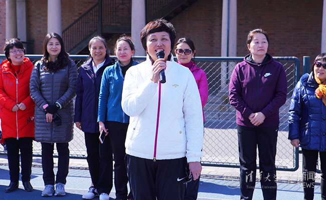 女教职工在西操集合出发。记者 张帆 摄