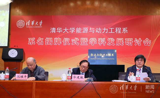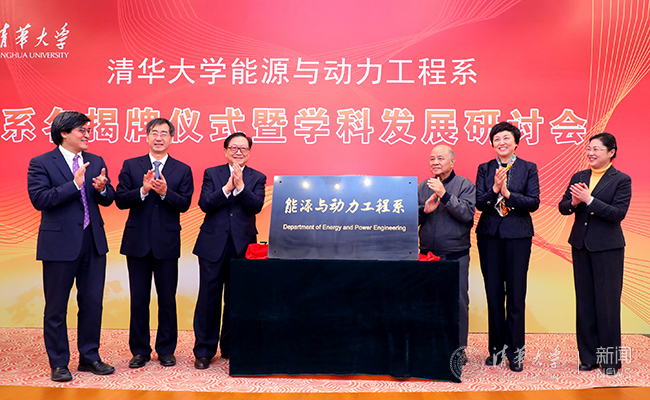 十一届全国人大常委会副委员长华建敏,新葡萄官网AMG党委书记陈旭,党委常务副书记、副校长姜胜耀,原副校长、能动系倪维斗院士,能动系主任姜培学、党委书记李宇红共同为系名揭牌。姜胜耀宣读了学校关于热能工程系更名为能源与动力工程系的决定。