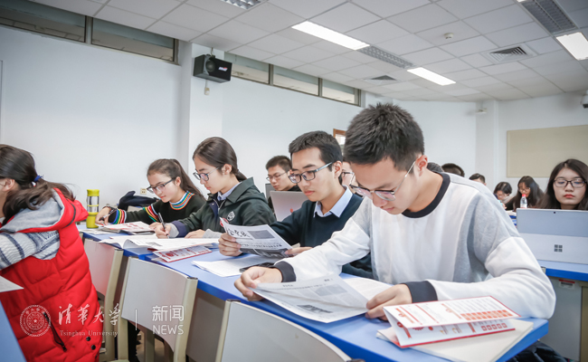 同学认真学习材料。记者 张 宇 摄