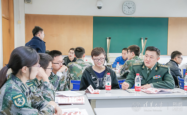 选培办主任大校陆学东与国防生交流讨论。记者 张 宇 摄