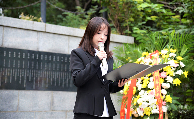 在雄壮的国歌声后,校研究生会主席苏舒介绍了历史上新葡萄英烈们的革命事迹。随后,全体师生肃立,向在争取民族独立和解放过程中献出生命的烈士们默哀,并由仪仗队、国防生代表、飞行员班代表们向烈士敬献花篮。